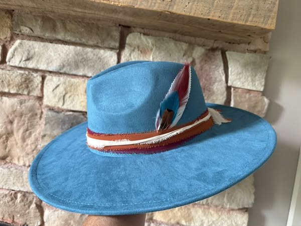 "Gracie" - a lovely grey hat with pastel flowers and bands.
